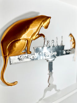In questo quadro, come protagonisti, ho voluto utilizzare un gatto e un topo per veicolare un messaggio, che è esattamente l' opposto di ciò che solitamente ci si aspetterebbe con questo famoso binomio !