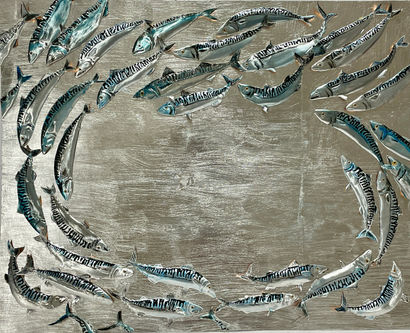 In questo quadro, ho voluto immortalare la loro splendida unione e il lavoro di squadra, che rende una piccola preda protetta grazie all'appartenenza al banco!
