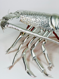 Questa scultura in alluminio, realizzata con la tecnica dello sbalzo a mano libera, rappresenta una riproduzione fedele di un’aragosta. Ogni dettaglio – dalla segmentazione del carapace alle articolazioni delle chele – è stato studiato e inciso con precisione su una lastra di metallo, modellata esclusivamente con strumenti manuali. Il rilievo tridimensionale restituisce la struttura complessa dell’animale, esaltata da una lavorazione che valorizza riflessi e volumi.